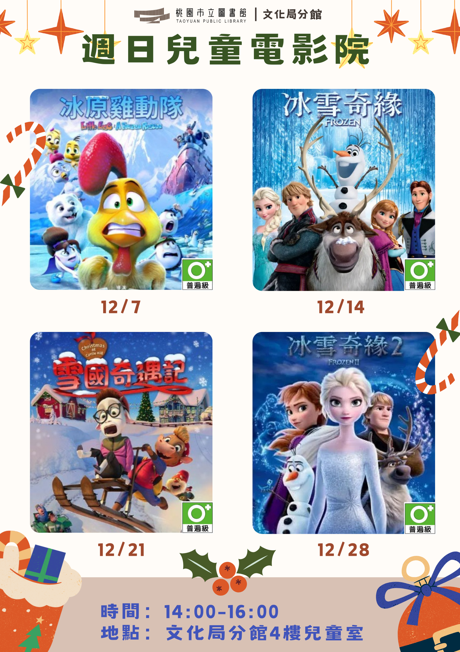 【桃園週日兒童電影院】114年12月文化局分館電影欣賞