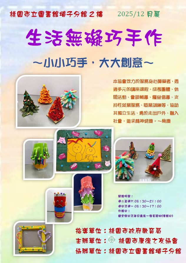 【桃園公益展覽】114年12月埔子分館 生活無礙巧手作特展
