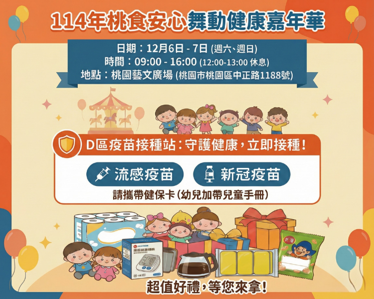 【桃園鄉親好康報報!來嘉年華打疫苗,好禮拿不完】