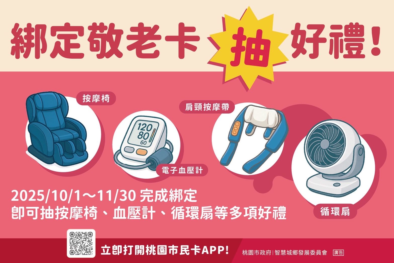 【限時活動】桃園市民卡APP綁定桃園市敬老卡|關懷好禮抽!