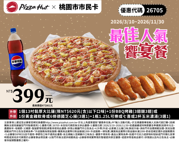 最佳人氣饗宴餐 優惠代碼26705