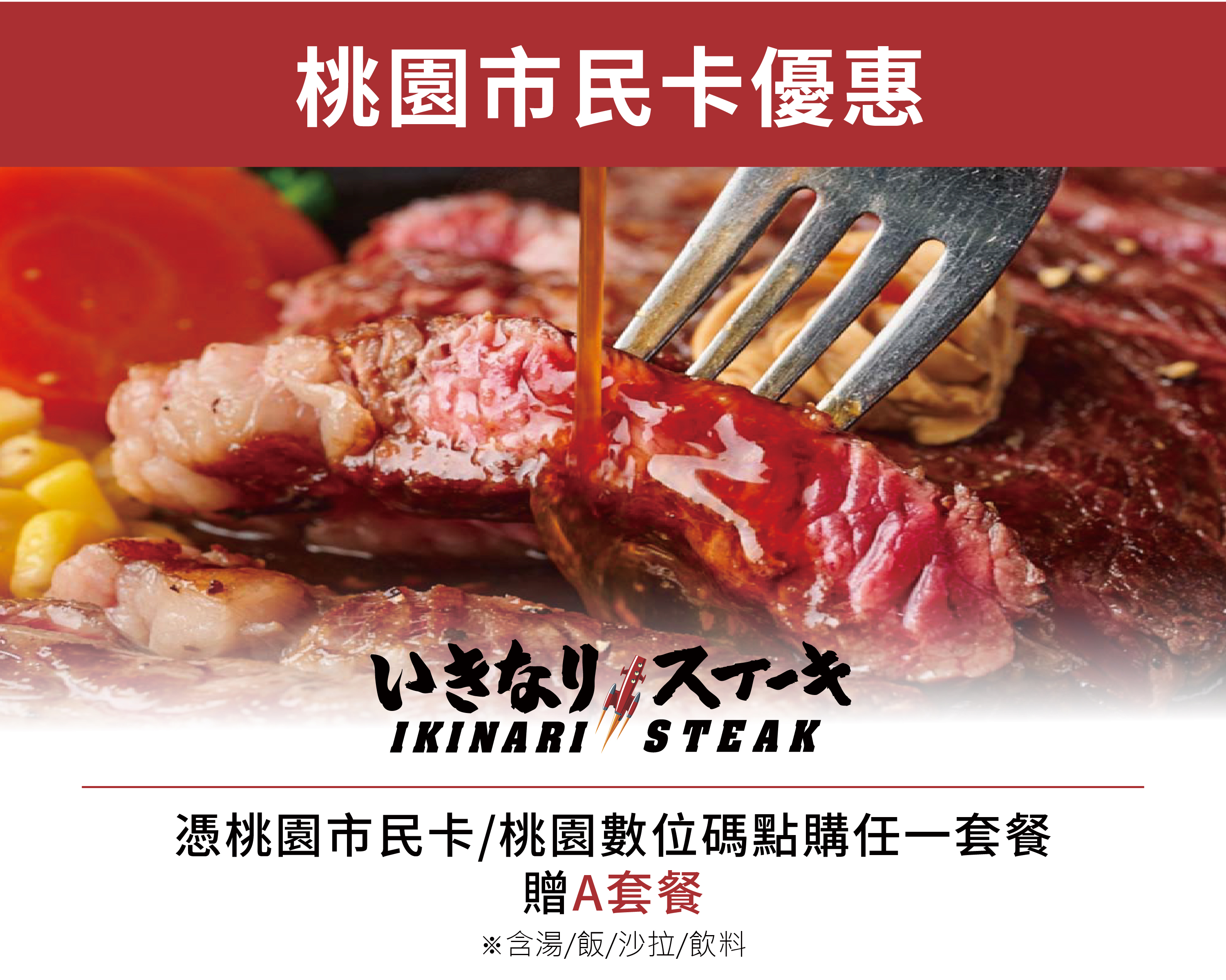 點購任一套餐,贈A套餐(含湯、飯、沙拉、飲料)。