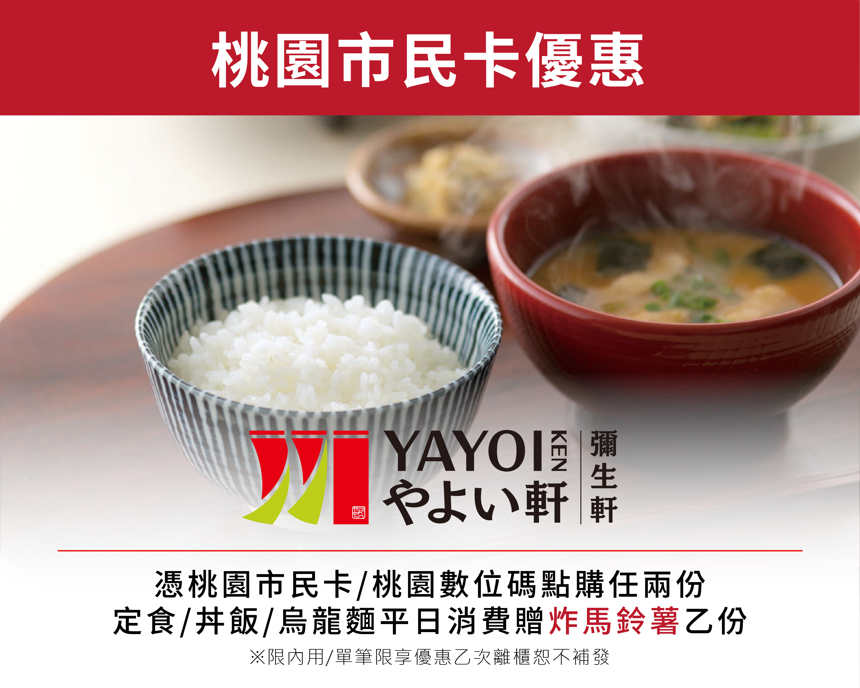 平日點購任兩份丼飯/烏龍麵贈炸馬鈴薯乙份